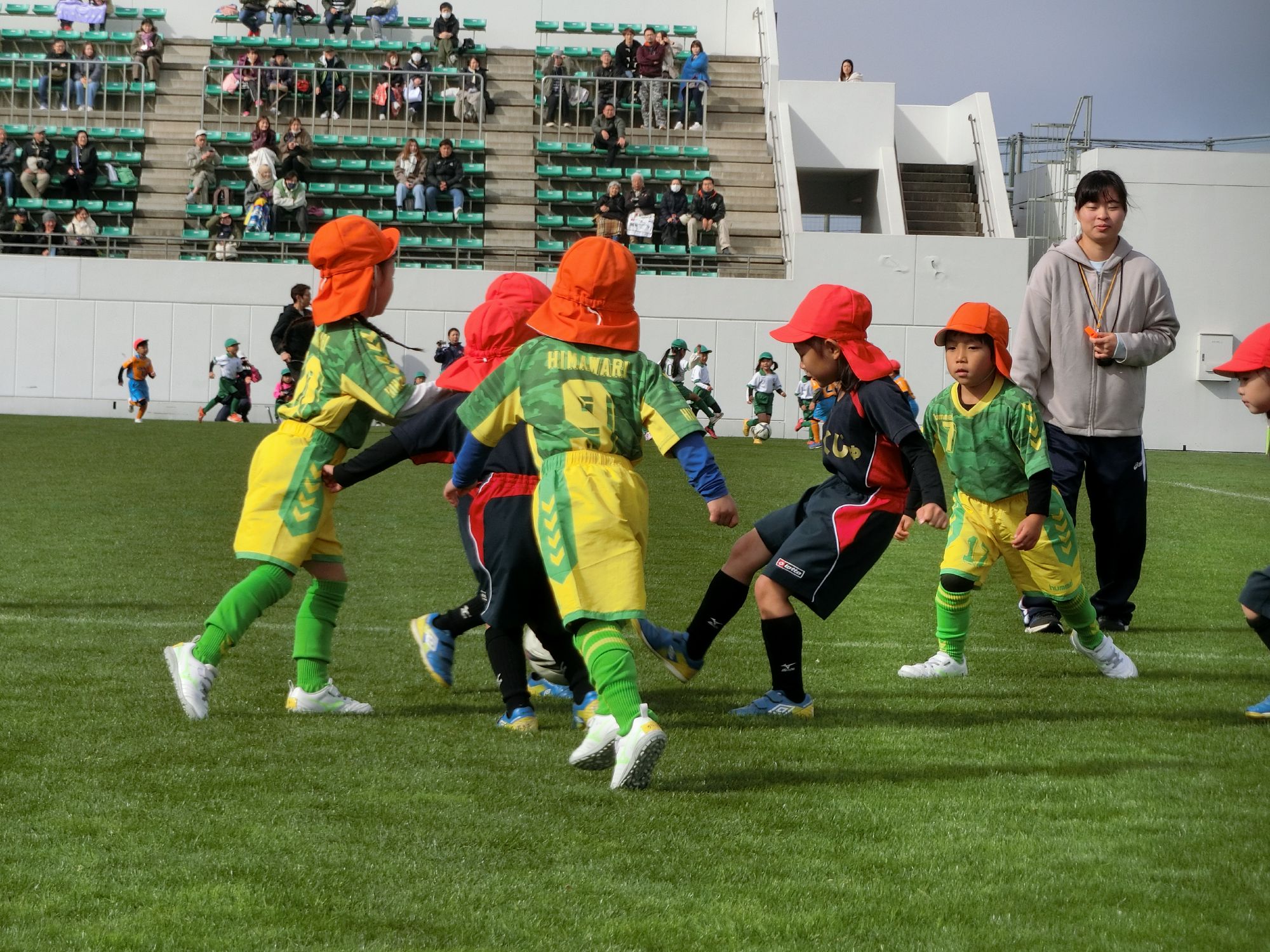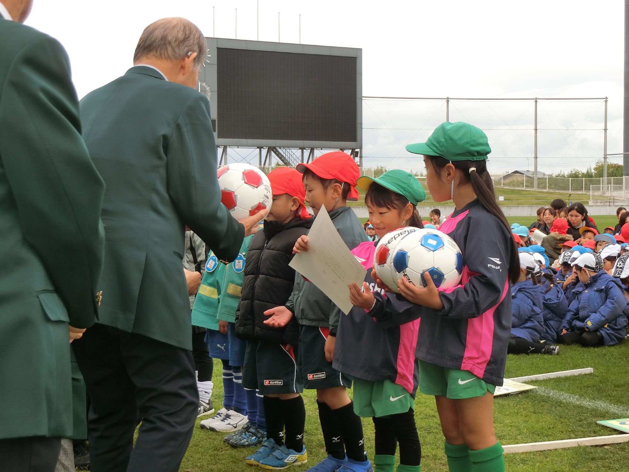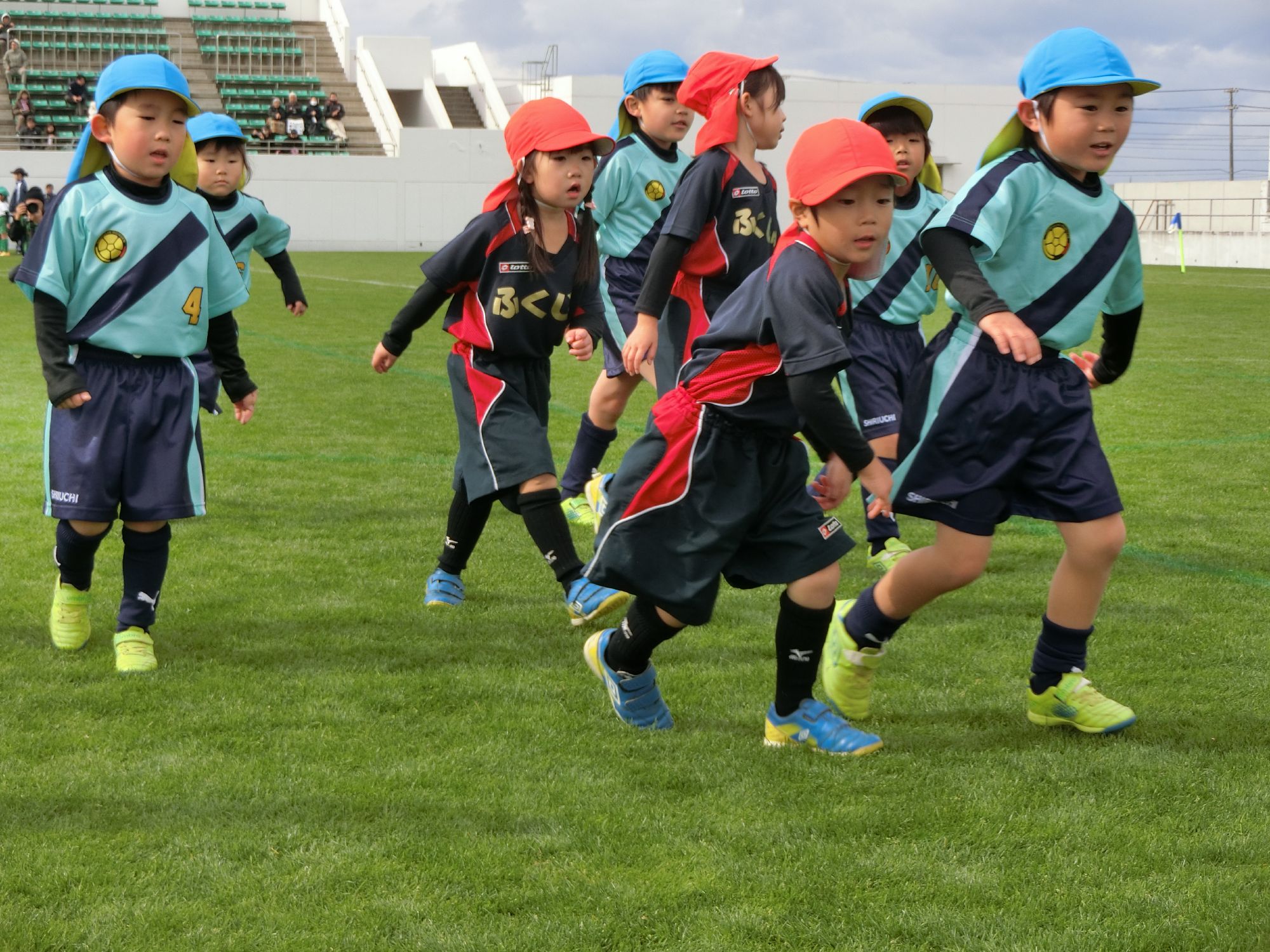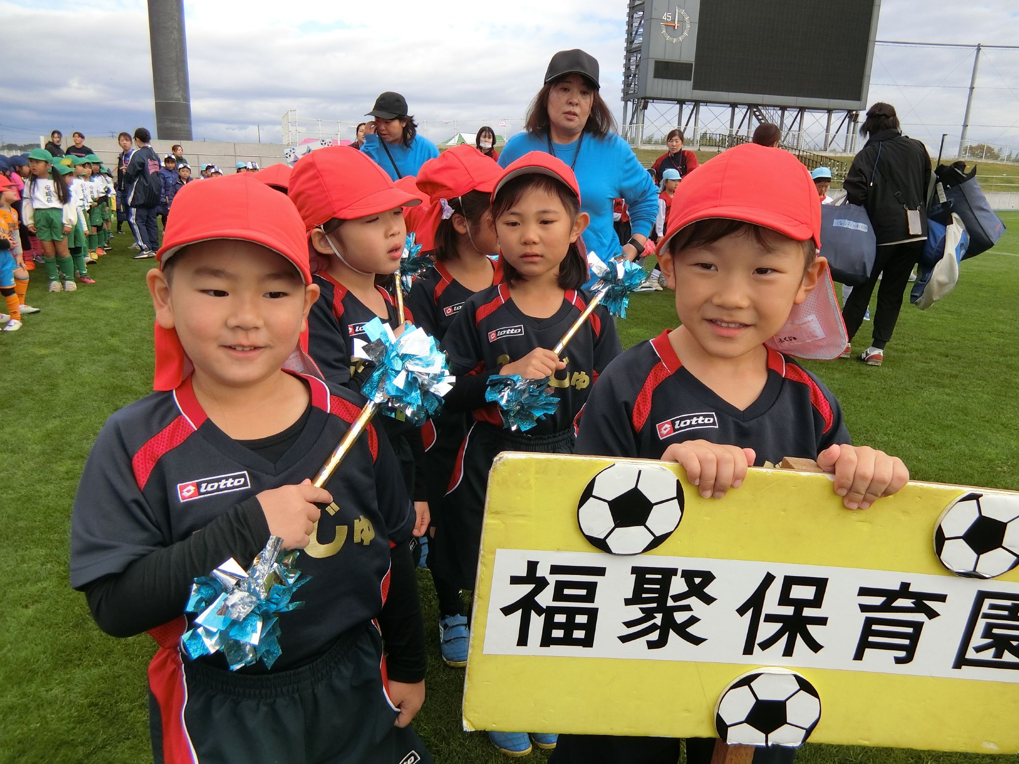 秋のサッカー大会を年中と年長で行いました。
