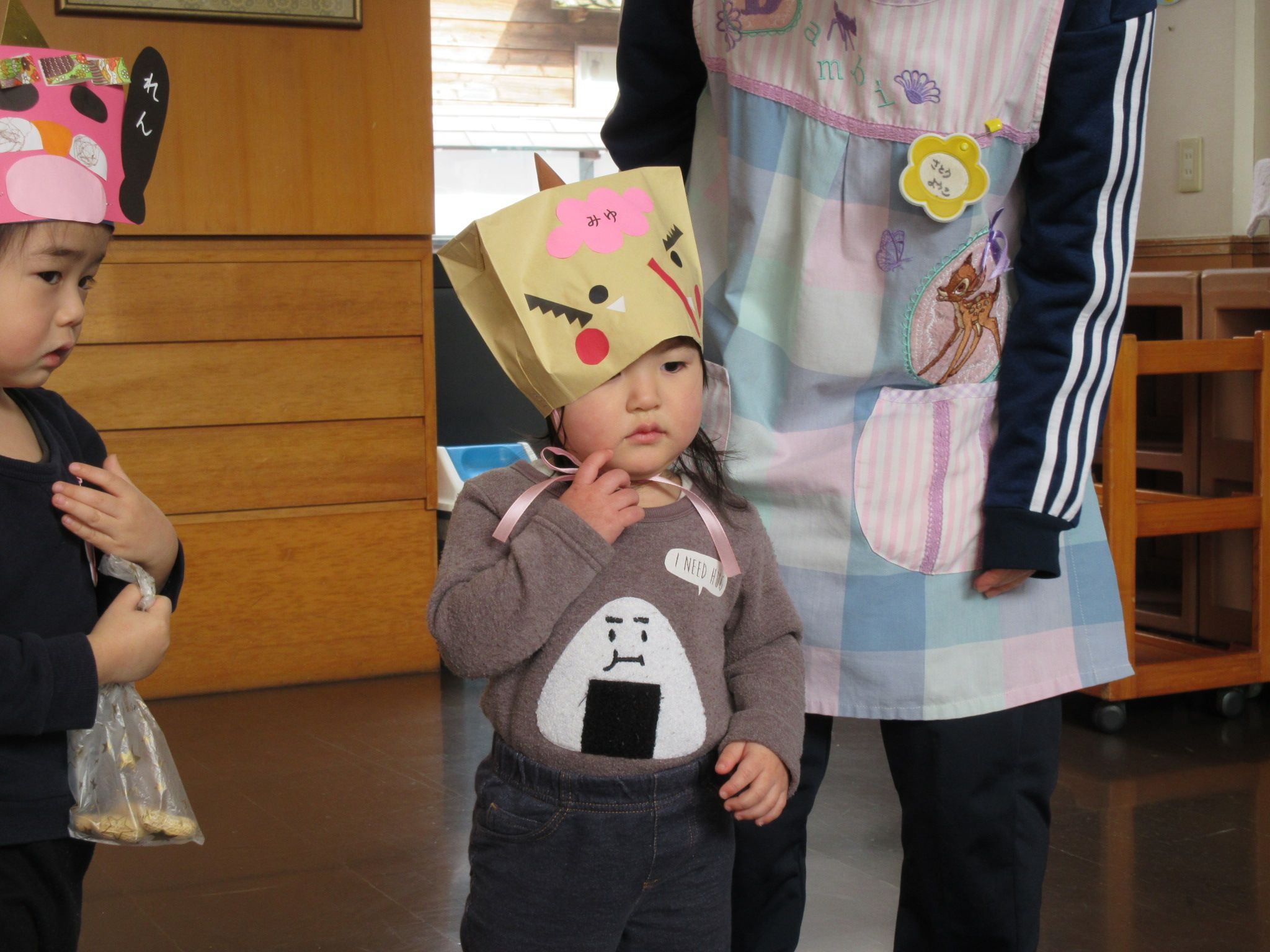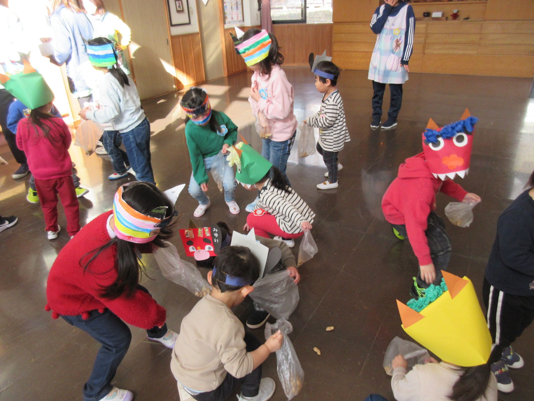 勇気を出して豆をぶつける子がたくさんいました。
